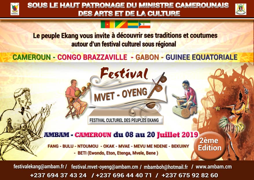 Ambam, CamerounCe festival est un rendez-vous culturel du peuple Ekang à Ambam au sud du Cameroun, réunissant le pays tel que le Cameroun, le Gabon, le Congo Brazzaville, la Guinée Équatoriale, l’Angola et le Sao Tomé et Principe.